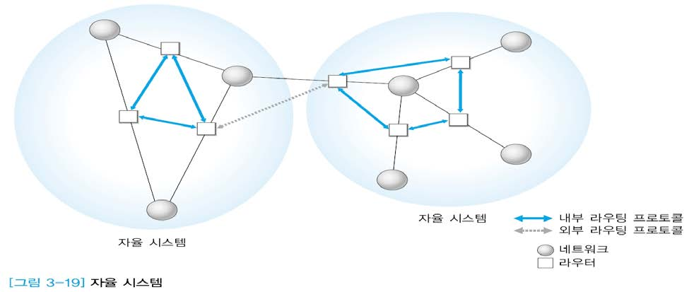 - 내부 라우팅 프로토콜(Interior Routing Protocol): 자율시스템 내부에서 사용