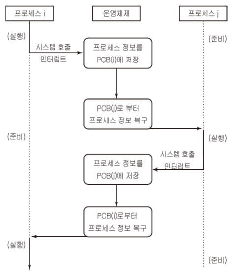 : 현재 실행 중인 프로세스의 정보를 PCB에 저장하고, 다른 프로세스의 정보를 PCB로부터 복구시키는 작업