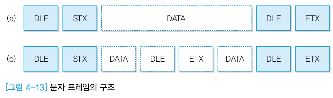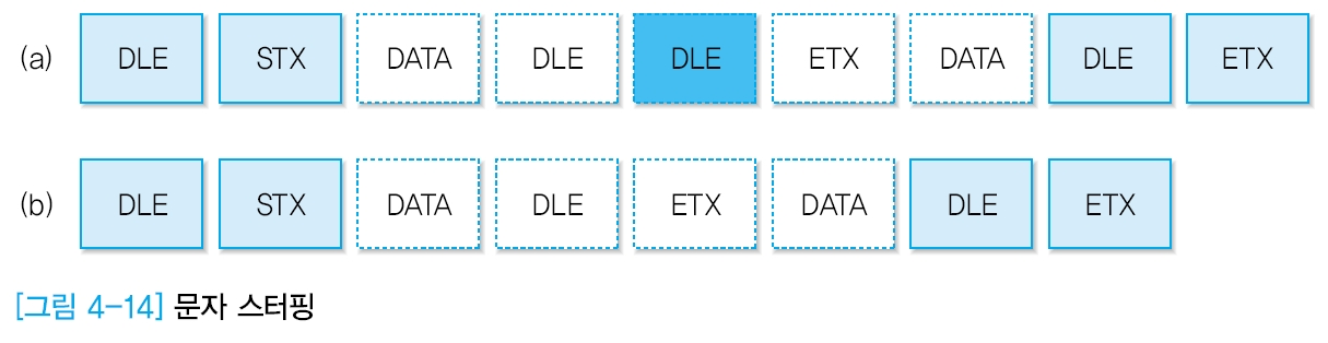 - 문자 프레임 전송과정에서 제어 문자를 추가하는 기능