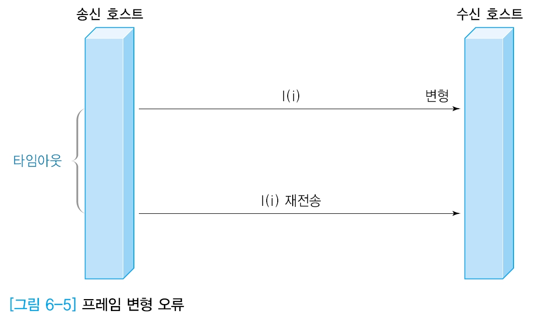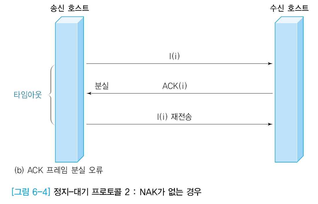 - ACK 프레임 분실: 송신 호스트의 타임아웃 기능으로 오류 복구