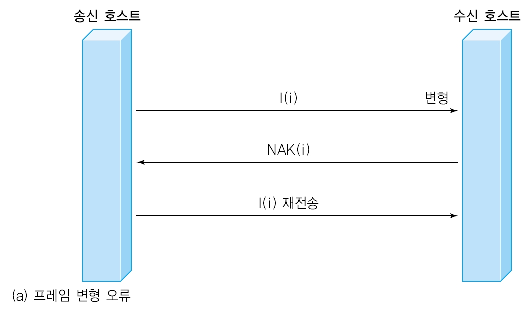 - 일반적으로 NAK과 타임아웃 기능을 모두 사용하여 오류 제어를 수행