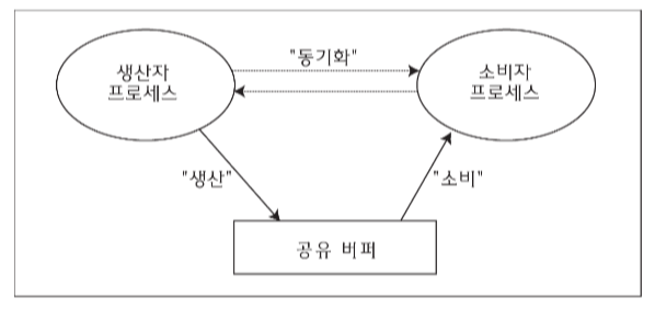 생산자 프로세스: 데이터를 생산하여 공유버퍼에 저장한다.