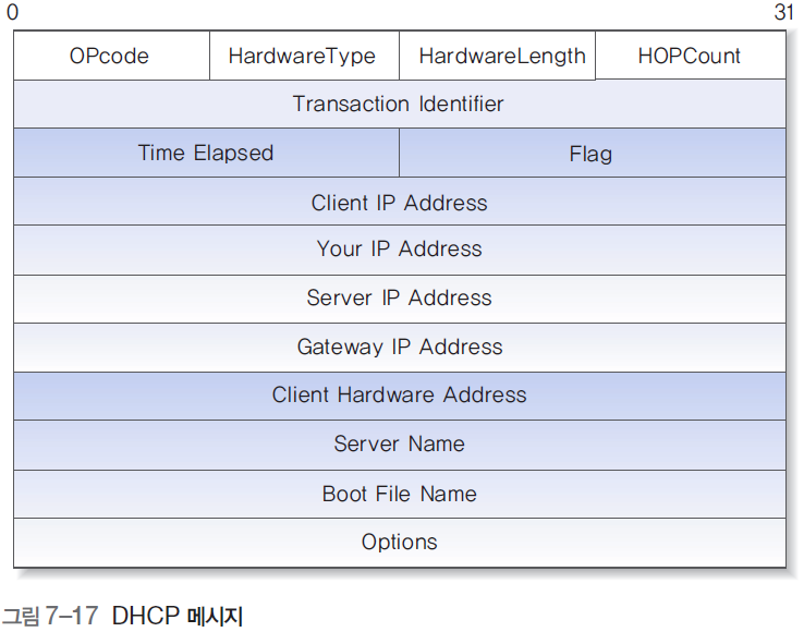 DHCP 프로토콜의 주요 메시지(Options 필드)
