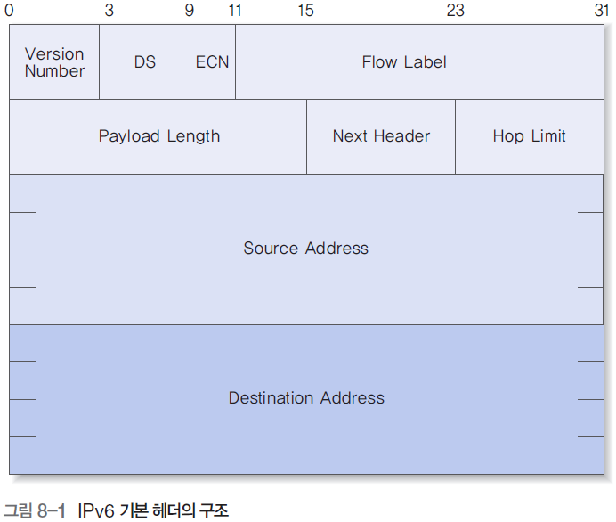 - Source Address/Destination Address: IPv6 의 송신 호스트/수신 호스트 주소