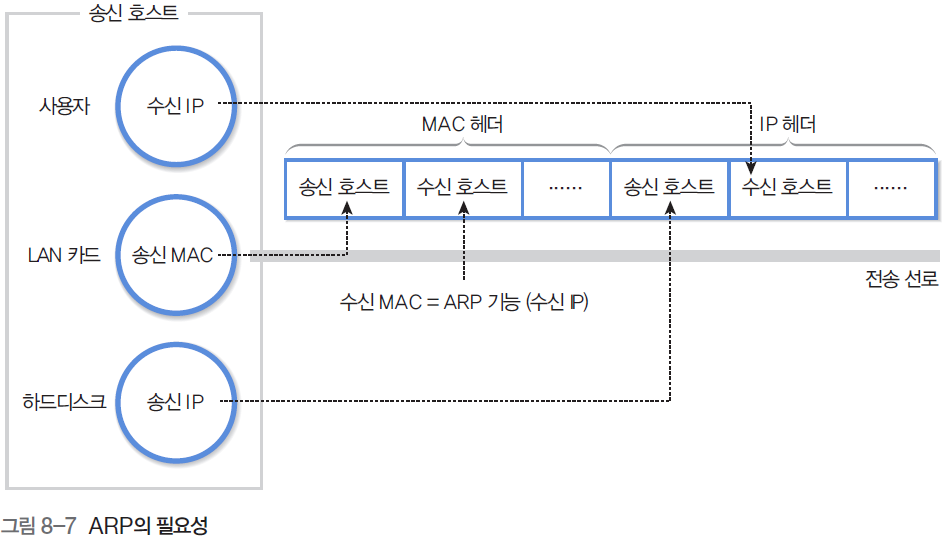 - 수신 호스트의 IP 주소를 통해 수신 호스트의 MAC 주소를 제공