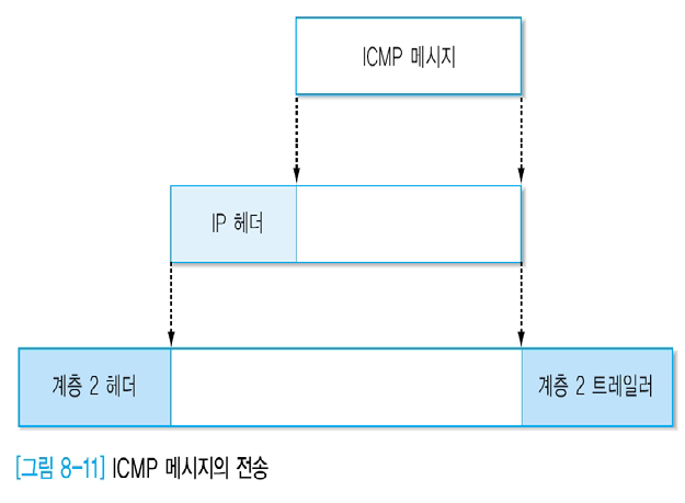 - ICMP 메시지는 IP 프로토콜에 캡슐화되어 전송