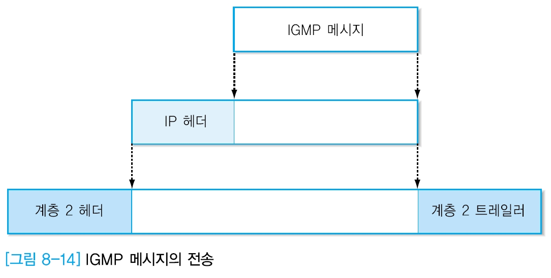 - IGMP 메시지는 IP 프로토콜에 캡슐화되어 전송