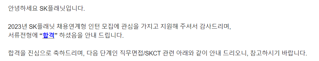 서류만 내면 코테를 볼 수 있고, 서류 붙으면 면접결과에 상관없이 SKCT를 볼 수 있었기 때문에