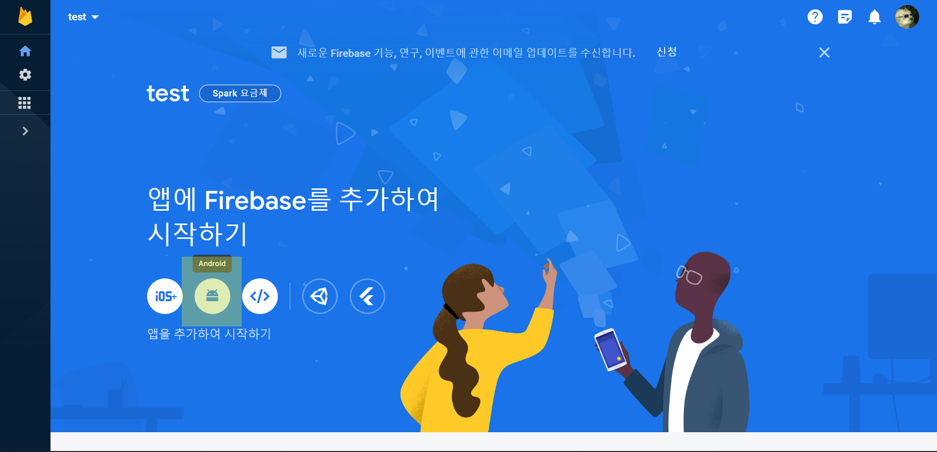 프로젝트명, Firebase 계정 등을 설정하면 간단히 프로젝트가 생성된다.