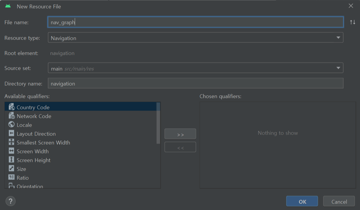 - File name 필드에 'nav_graph'와 같은 이름을 입력