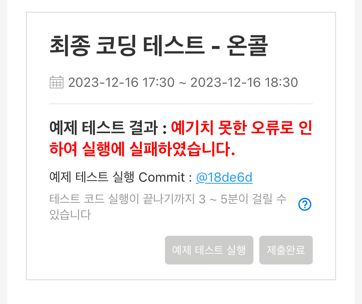 푸시 후 테스트를 다시 돌려봤을 때, 예상치 못한 오류가 발생했다는 메시지가 떴었다. (로컬에선 잘 돌아감)