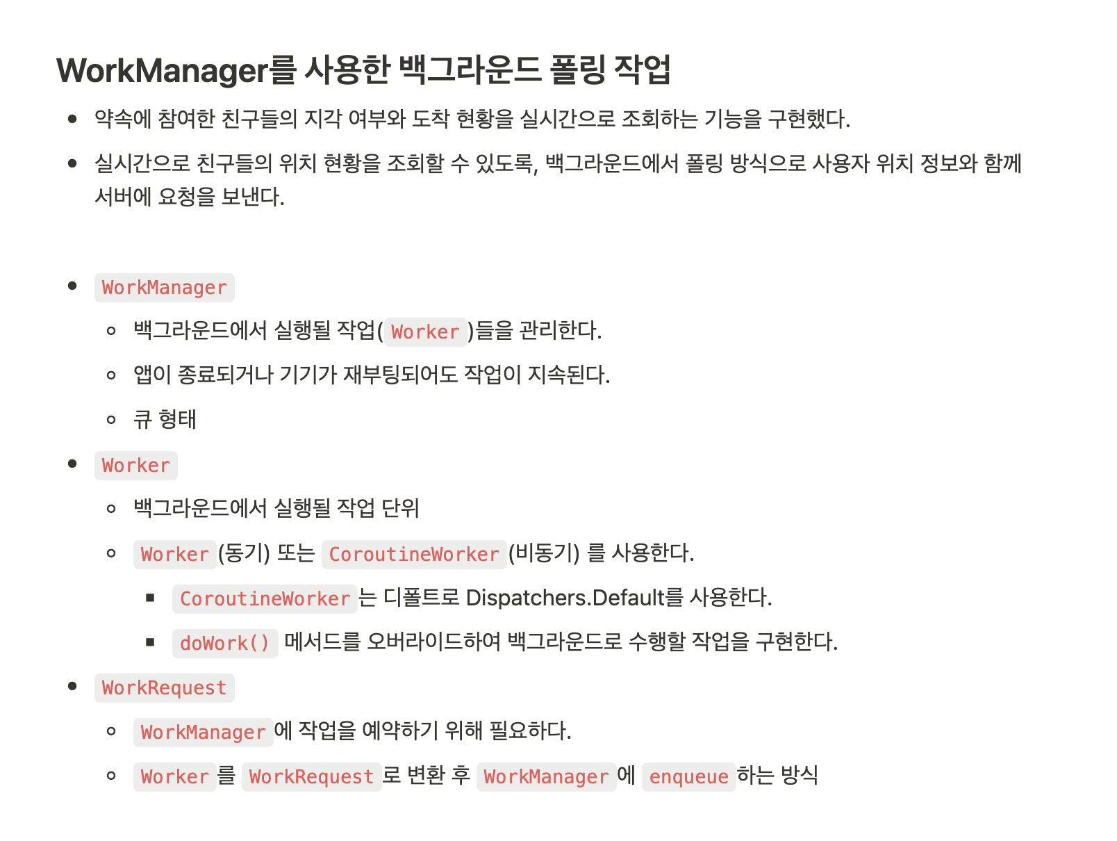 - WorkManager에 대해 잘 알고있음.