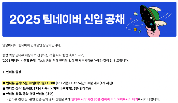 다른 기업에 잘 다니고 있는 지금 얘기하기엔 좀 웃기지만 2025년 나에게 꽤나 큰 이슈는 네이버 공채였다. 3개월이라는 긴 시간동안 채용이 진행되기도 했고, 정말 가고 싶은 기업이었기 때문에 최선을 다해 준비했다. 결과적으로는 최종 면접에서 탈락했고, 최선을 다한만큼 탈락했을 때 타격이 컸었다. 온전히 회복하는데까지 1~2일의 시간이 걸린 것 같다.