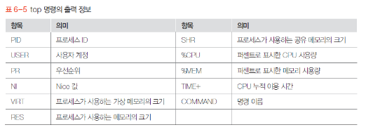 top : 현재 실행 중인 프로세스의 정보를 주기적으로 출력.