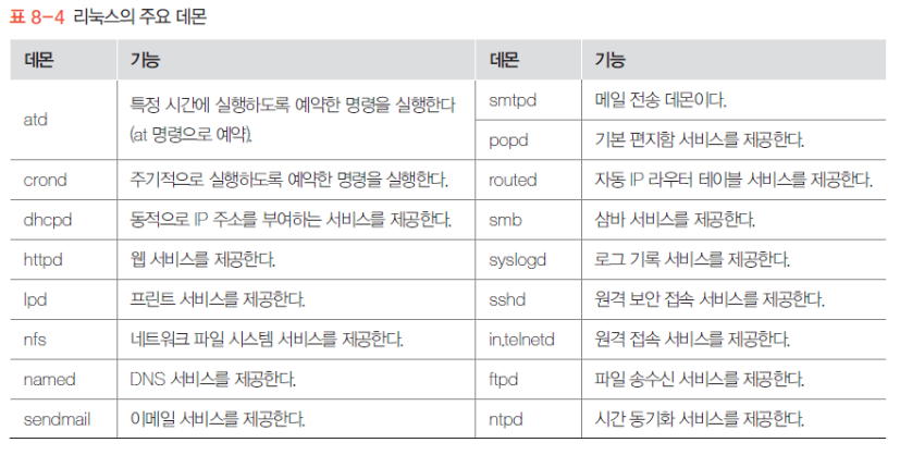 * 커널 데몬: 커널의 일부분을 프로세스처럼 관리하는 데몬.