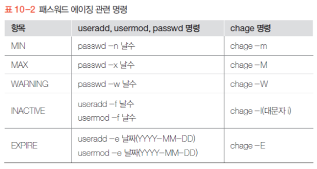 chage는 패스워드 에이징을 관리하는 별도의 명령.